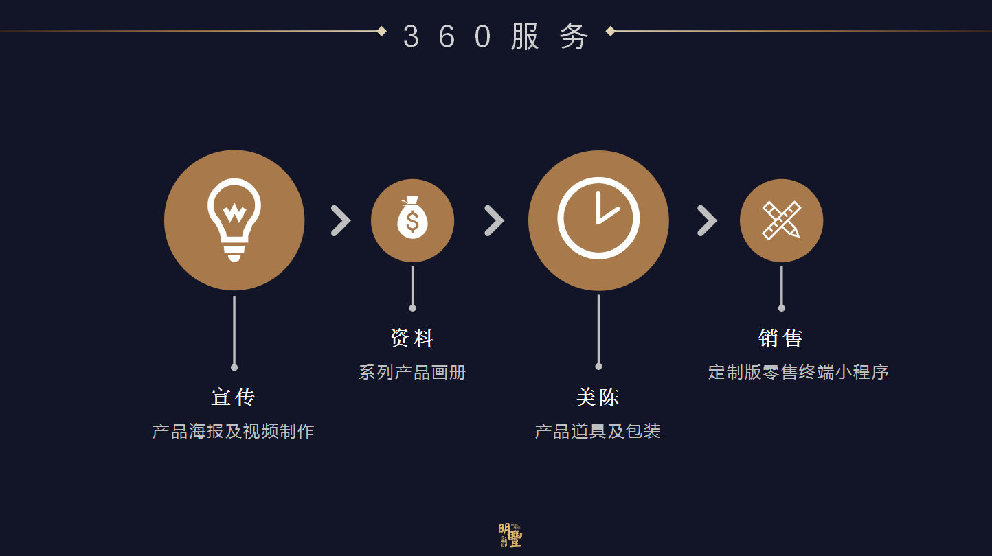 为客户提供产品配套的道具、包装、微信推广、灯片、H5等一系列的增值服务。